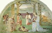 According to Giorgio Vasari, Andrea d’ Assisi, l' Ingegno was the most promising of Perugino’s’s assistants in the Sistine Chapel of the Vatican Palace. Vasari also cited Andrea’s collaboration with Perugino in relation to the frescoes of the Collegio di Cambio in Perugia and at the Portiuncula in Assisi (see below).