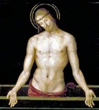 ✴The smaller upper panel depicted Christ in the coffin, in which the half-length figure of Christ displays His wounded hands, painted over the earlier Madonna della Misericordia by Sante di Apollonio.