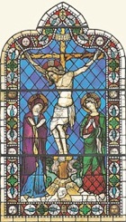 The original window has been attributed to Giovanni di Bonino on the basis of a comparison with the corresponding scene in the window at Orvieto (above), albeit that the iconography is different in the two works. (The cross in Orvieto is “Y” shaped). The Perugian window is usually dated to ca. 1345 because Giovanni di Bonino was called to Orvieto from Perugia in that year. However, some scholars believe that it predates the window in Orvieto.
