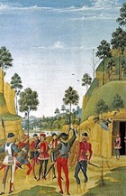 This group of artists is named for eight panels (1473) that depict miracles of St Bernardino of Siena, which are dated by inscription (above the arch of Titus in the panel on the bottom left below): they were first recorded in 1784 in the sacristy of San Francesco al Prato (link below) and are now in the Galleria Nazionale: