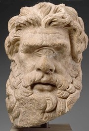 This is an extraordinarily graphic description of Cocles’ unfortunate facial features, which reminded Plutarch of the gigantic one-eyed Cyclopes of Greek mythology, is certainly redolent of the head of a Cyclops illustrated here: