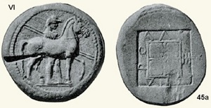 •his coin 45, catalogued at pp.71-2 and illustrated on Plate IX, which had an anepigraphic quadripartite incuse square reverse; and
