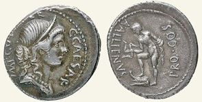 Denarius issued by A. Allienus, :praetor and proconsul in Sicily: 47 BC (RRC 457/1)