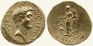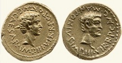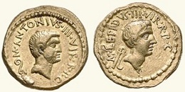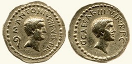 “... both [Mark Antony] and Octavian celebrated the event with issues of portrait gold [illustrated above] ...”