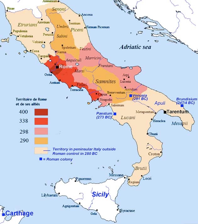 Peninsular Italy at the outbreak of the Pyrrhic War (adapted from Wikiwand, my additions in blue)
