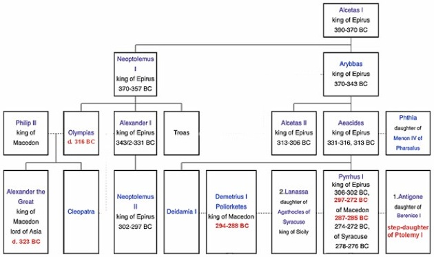 Pyrrhus’ family tree (adapted from Wikipedia, my additions in red)