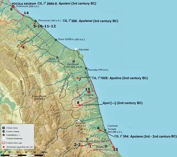 Inscriptions (3rd-2nd centuries BC) referring to Apollo near colonies between Ariminum and Castrum Novum