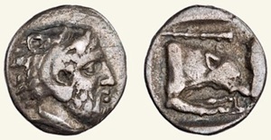 Obverse: Head of beardless Heracles right wearing lion skin headdress
