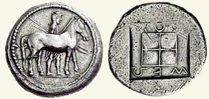 Reverse: ΜΟΣΣΕΩ, surrounding a square divided by two crossed lines within an incuse square