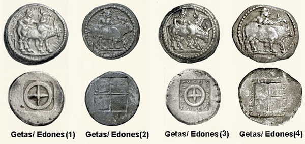 However, Getas , king of the Edones, is known only from the inscriptions on his coins, albeit that all of the coins ‘signed’ by the Edones also bear his name as their king.