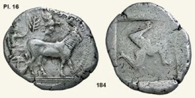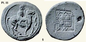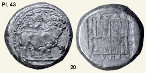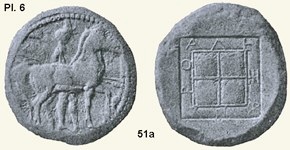 ✴his coin 1 (29.25 gm., catalogued at p. 179 and illustrated on Plate 42) was ‘signed’ on the obverse, with a reverse of a four-spoked wheel in an incuse square: and