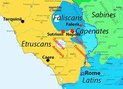 Red italics (Sabatina, Tromentina, Stellatina, Arnensis) = Roman voting tribes