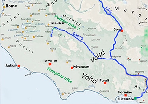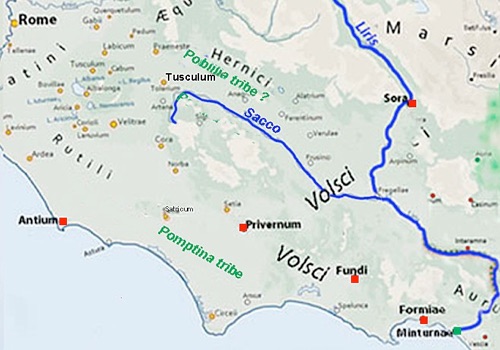 ✴territory in the upper valley of the river Sacco ... was [confiscated by Rome at this time and] annexed as the Poblilia tribe; and