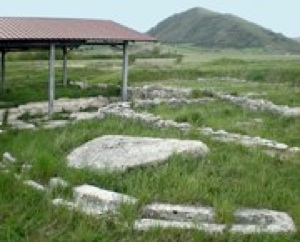 Excavations at Plestia (on the shores of the ancient lacus Plestinus), with Monte Orve on the horizon