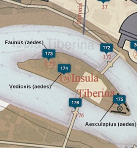 possible sites of the temples of Faunus and of Vediovis on the Tiber Island