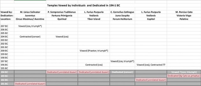 The period 194-1 BC saw the dedication of six temples that had been vowed by an individual who had held military imperium at the time: