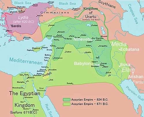 Map adapted from the page on King Ashurbanipal of Assyria (668 - ca. 631 BC) in the ‘New World Encyclopaedia