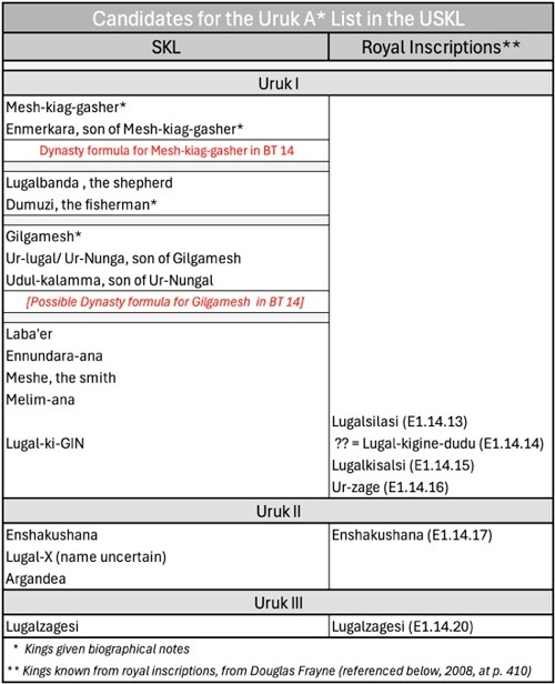 ✴for whatever reason, the USKL cannot have been the primary source for the SKL Uruk I and Uruk II king lists.