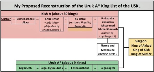 In the schematic above, I have attempted to summarise the possible synchronisations between the ‘Kish A’ and the ‘Uruk A*’ kings, starting with