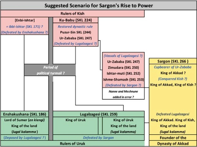 Thus, the putative Sargonic precursor of the USKL might well have been written (in Akkadian) after Sargon’s conquest of Kish, for the benefit of his new subjects, and it need not have made any reference to Lugalzagesi or, indeed, to any ruler of Uruk: kingship had resided at Kish throughout the period from Gushur to Ishme-Shamash, when Sargon: