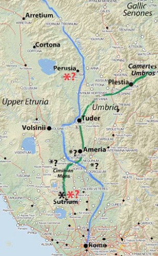 Thus, the likelihood is that the enemy army that assembled at Sutrium came largely from the Etruscan city-states of central Etruria (Volsinii, Clusium, Perusia, Cortona), with the notable exception of Arretium.