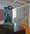 Emilio Greco moved to Rome in 1943 and was Professor of Sculpture at the Liceo Artistico there in 1948-52. Among his last works was the monument (1965–6) to Pope John XXIII in St Peter's, Rome. He exhibited in the exhibition “Incontri per le Strade” in Spello in 1983 and was made a citizen of the city in 1985. He donated a number of works to the city in 1989. These are now exhibited on the three rooms on the second floor of Palazzo Comunale Vecchio. They include this painted chalk figure (1971) called "l’ Accoccolata" (the crouching woman).