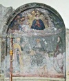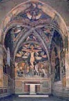 The many works in Spoleto that by or attributed to Bartolomeo da Miranda are described in the page on the artist: they include this fresco (1437) in the crypt of San Ponziano.