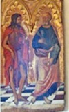 Jacopo di Vinciolo is well-documented in Spoleto in the period 1444-95. He had particularly strong links with the Franciscans of SS Simone e Giuda there. This panel (1466) of SS John the Baptist and Peter probably belonged to the polyptych that the friars commissioned from Jacopo di Vinciolo in 1466 for the high altar of the church. It is now in the Museo del Ducato di Spoleto.