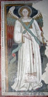 The church of San Michele, Eggi (outside Spoleto) contains the autograph works of the Maestro di Eggi, which include this frescoes (1448) of St Michael. There are also frescoes attributed to him in: