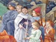 ✴Bishop Antoninus Pierozzi of Florence stands among the Apostles, reading from the Book of Psalms.