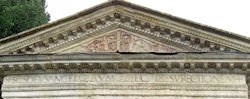 The door at the centre of the pediment leads to the T-shaped crypt.