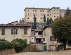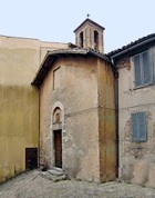 Turn right to see the ex-church of San Lorenzo (12th century), the back of which is pictured above. This was originally a parish church and was documented in 1138, when it belonged to the Abbazia di Sassovivo. Its facade shows the signs of major modification: the present campanile probably replaced the original, which may well have been directly above the portal and bifore window. The church was restored in 1972 but it is usually closed.