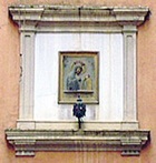 Look back to see a second relief of the Madonna on the covered walkway over the street.