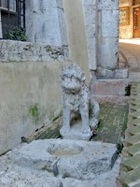 ✴The fountain in front of the south facade of the palace incorporates a statue (12th century ?) of a lion that guards a fragment of the Roman pavement. (The more extensive Roman pavement on the other side of Via Porta Fuga is covered during nearby restoration work - January 2009).