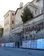 Turn left on leaving the foyer, cross Via Egio and continue along Viale Matteotti to Piazza Carducci. Look back to see a stretch of the walls high up in a private garden in Via Egio, on the right, which is contiguous with the stretch excavated in the foyer.