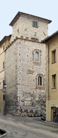 ✴The tower on the corner is the so-called Cassero dei Perugini: this is the fourth of those here that stand on what seem to be Roman foundations. The lower part of the tower might have formed part of the fortress that the Perugians built here during the Ghibelline rebellion of 1325. Cardinal Gil Albornoz ordered its destruction when he took Spoleto back into direct papal control in 1354.