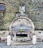 Proceed anti-clockwise from the palace, past SS Simone e Giuda to the Fontana di Mascherone. The war memorial (1910) stands among the trees opposite the fountain. It commemorates the men who died here on 17th September, 1860, when the Piedmontese troops of General Filippo Brignone took the Rocca from the vastly out-numbered papal forces in the war of Italian Reunification.