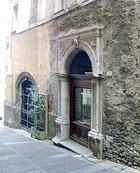 Continue ahead along Vicolo della Misericordia, which runs between San Nicolò (on the left) and the Monastero delle Palazze. There is an interesting fresco (16th century) in the loggia near the bottom on the left that depicts the Crucifixion with the Virgin and St John the Evangelist. Like the building above, this one also belonged to the Confraternita della Misericordia e della Buona Morte (see Santa Maria della Misericordia, below).