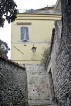 Return to to Piazza Carducci and fork right along Via Egio, past Pizzeria Tre Fontane and into a small piazza. Climb the steps of Via delle Cantoncelle opposite: the palace ahead stands on foundations provided by the Roman walls. (“Cantoncelle” is a dialect word for “small corners”, which is probably a reference to the dogleg at the start of the street). This street continues as Via Lauri and ends as an arched passage under Palazzo Mauri (see Walk I).