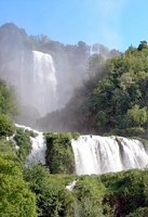 This waterfall, which is one of the highest artificial waterfalls in Europe, is near the village of Marmore, about 10 km east of Terni. It has a drop of some 165 meters divided into three falls, the first and highest of which has a drop of some 83 meters.