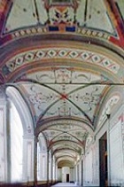 The frescoes of mythological scenes on the ceilings of two rooms of the piano nobile (the Sale di Apollo and the Sala dell' Aurora) are attributed to Liborio Coccetti.