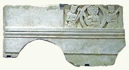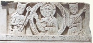 This marble facing was discovered in 1993 near San Fortunato. The inscription under the carved figures identifies: