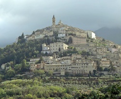 When you leave the church, walk up towards the city, pass the road to the left signed to Santa Lucia and take the next left. This winds steeply up to to Porta della Strada Nuova (signed to Hotel Trevi). Take the fork to the right, just before this gate, which leads to Porta del Cieco. Turn right just before the gate and follow the walls back to Piazza Garibaldi, where the detour ends.