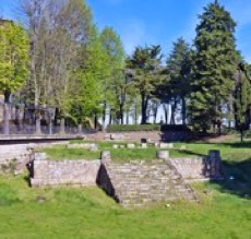 Much of the sanctuary at Campo della Fiera was probably destroyed at in the havoc of 264 AD. However, as noted above, the area around Temple A remained in cult use. This is evidenced, for example, by the donarium (illustrated above) that has been excavated in the sacred area in front of this temple, which was closely aligned with the temple itself. According to Alba Frascarelli (referenced below, at p 141):