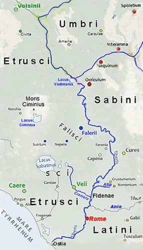 “Not only were the Veientines apprehensive of a similar fate, but the Faliscans too had not forgotten the war that they had .... [frequently supported Veii and Fidenae against Rome]. The two states [i.e. Veii and Falerii] sent envoys to the twelve cantons and, at their request, a meeting was proclaimed of the national council of Etruria, to be held at the at the fanum Voltumnae”, (‘History of Rome’, 4: 23: 4-5).